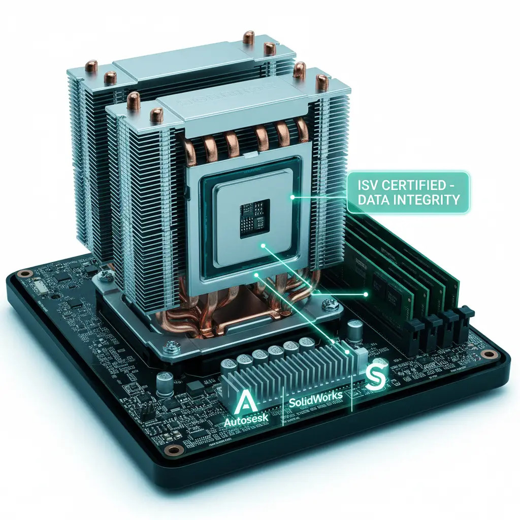 Contudo, o hardware é apenas metade da equação. O que verdadeiramente valida uma workstation portátil é a Certificação ISV (Independent Software Vendor). Esta certificação não é um selo de marketing, mas um processo de engenharia conjunto entre fabricantes de hardware (como Dell, HP ou Lenovo) e produtores de software profissional como a Autodesk (AutoCAD, Maya), Dassault Systèmes (SolidWorks, CATIA), Adobe e Siemens (NX). Ter um sistema certificado ISV significa que os drivers da placa gráfica e o firmware da motherboard foram testados exaustivamente para garantir que não existem conflitos de API ou artefactos visuais em operações complexas de desenho e simulação. É a ponte final entre o silício e o código profissional.