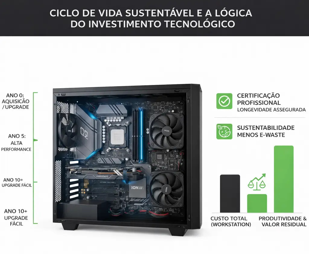 O valor residual de uma workstation de classe profissional mantém-se estável devido à sua construção modular. Enquanto um computador comum se torna obsoleto rapidamente, uma torre profissional permite a substituição cirúrgica de componentes, mantendo a base estrutural e a fonte de alimentação de alta qualidade por mais de uma década. Esta capacidade de atualização incremental significa que o custo total de propriedade é drasticamente inferior, transformando o que seria uma despesa de hardware num ativo duradouro que acompanha o crescimento das exigências dos projetos.
